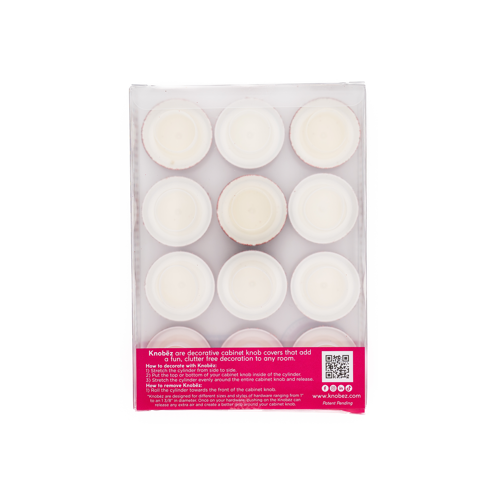 Knobēz are decorative knob covers that are both durable and reusable. Simply stretch Knobēz over your existing hardware for a clutter free addition to your decorations. You can still use your hardware for function!
