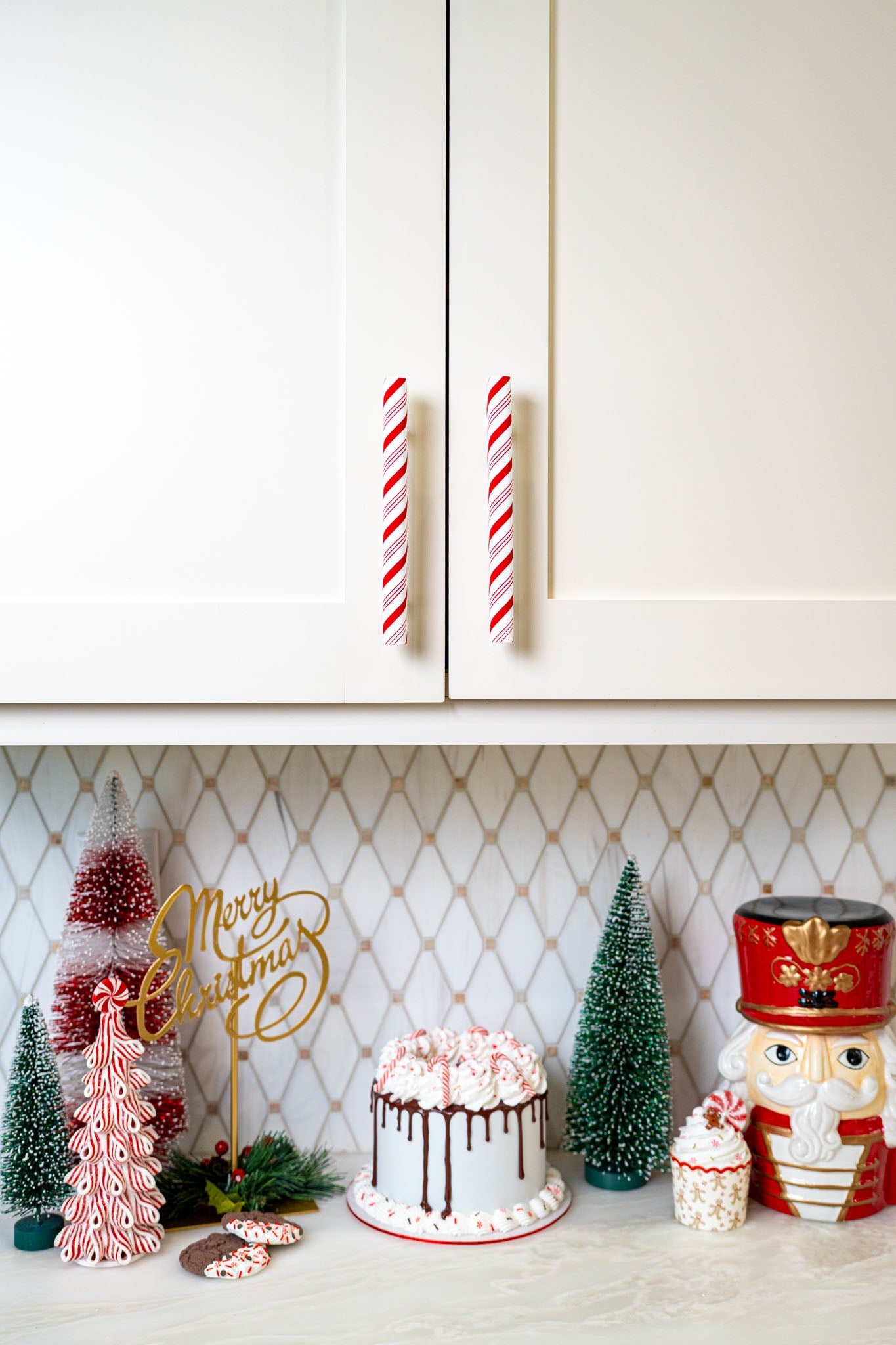 Peppermint Stick Handlez by Knobēz transform ordinary cabinet hardware into whimsical, festive decorations—no tools, no mess, and no permanent changes. Made from a new, more universal premium silicone material, these Handlez slip on easily and stay securely in place while protecting your cabinets from scratches and wear.